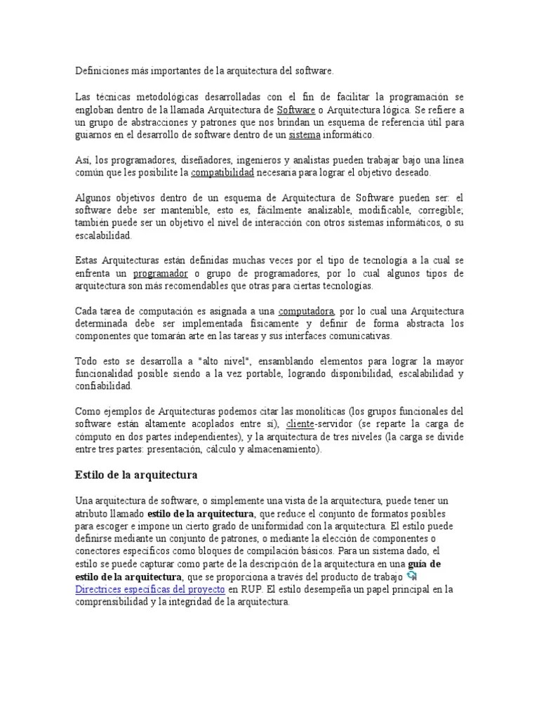 Gestión de los requisitos no funcionales y definición de la arquitectura de software;.. . 05.01.2009 · nuevamente el arquitecto entra en su rol de director de orquesta esta vez con otro equipo de trabajo, conformado por un jefe de proyectos (que tiene una metodología) y un experto técnico con un framework de trabajo bien definido y consolidado para definir cada una de las partes de la solución, esta vez se toma mas en detalle a la solución, se toman decisiones que deben estar de …